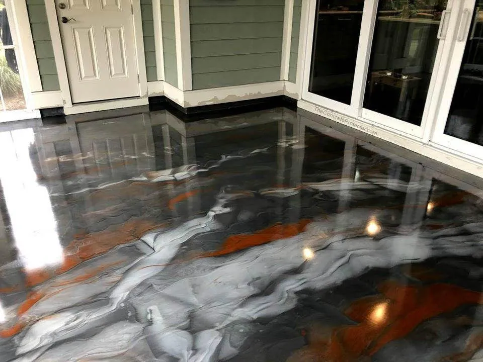 Metallic epoxy holds up against heavy use in both residential and commercial settings, offering long-lasting protection for concrete surfaces.