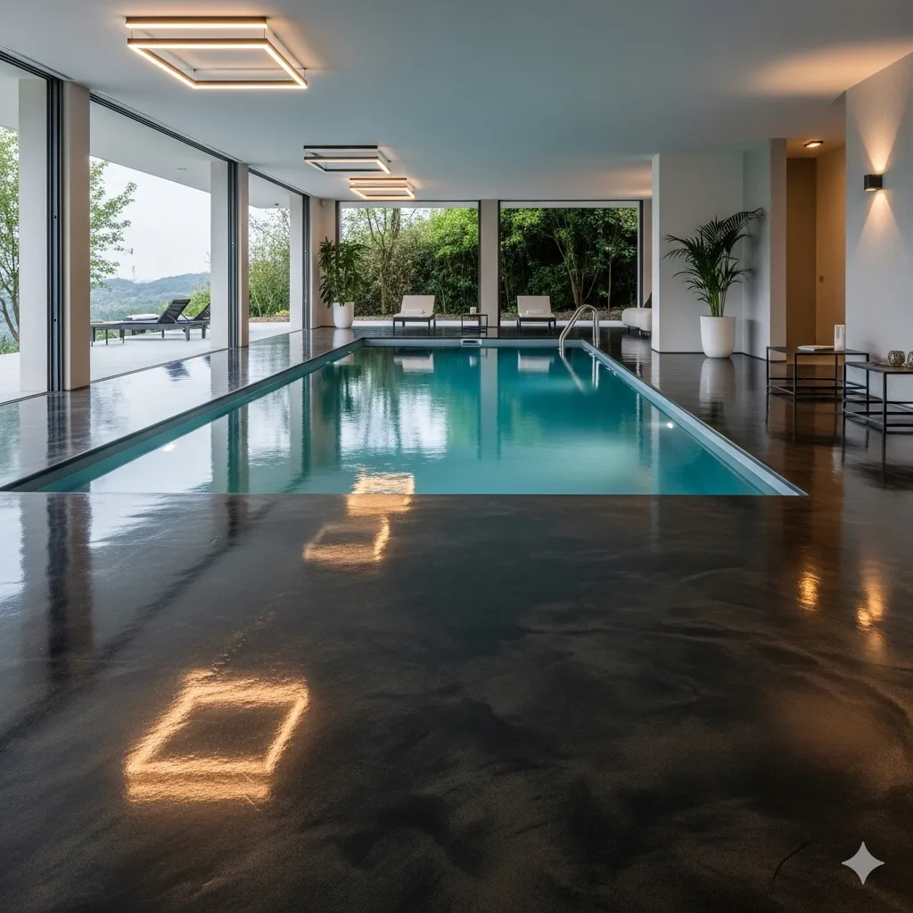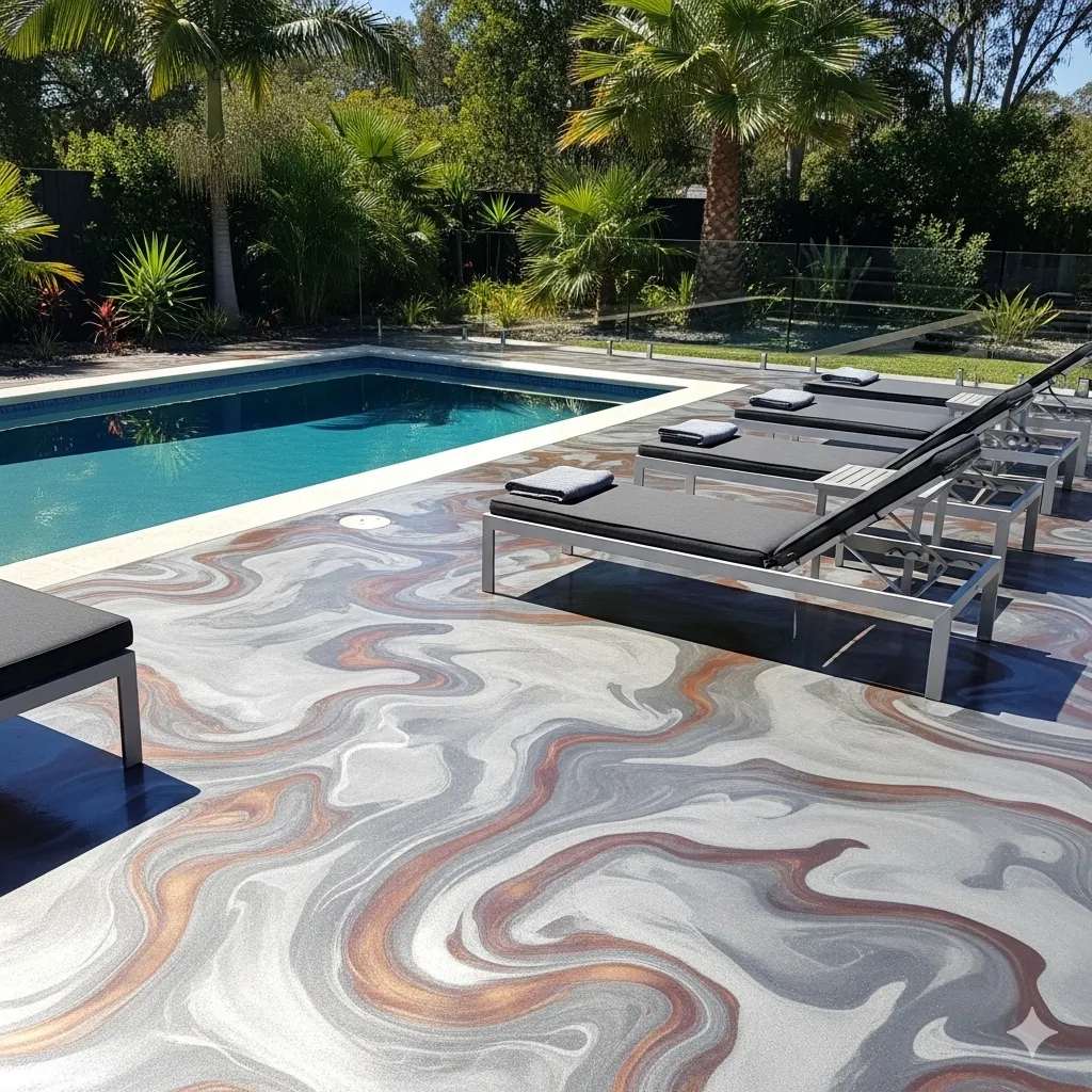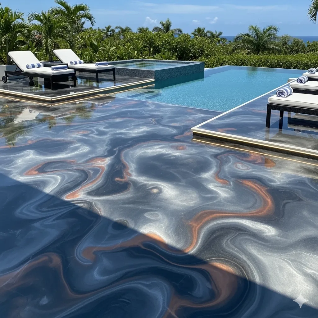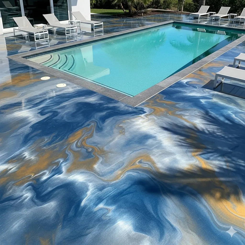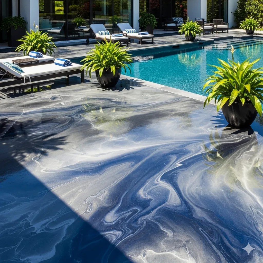The Creative Gallerie’s non-porous coatings are specially designed to keep your pool deck in top condition year-round. Engineered for superior durability, they provide a seamless barrier against harsh sunlight, pool chemicals, and constant water exposure — preventing fading, cracking, and surface damage over time.